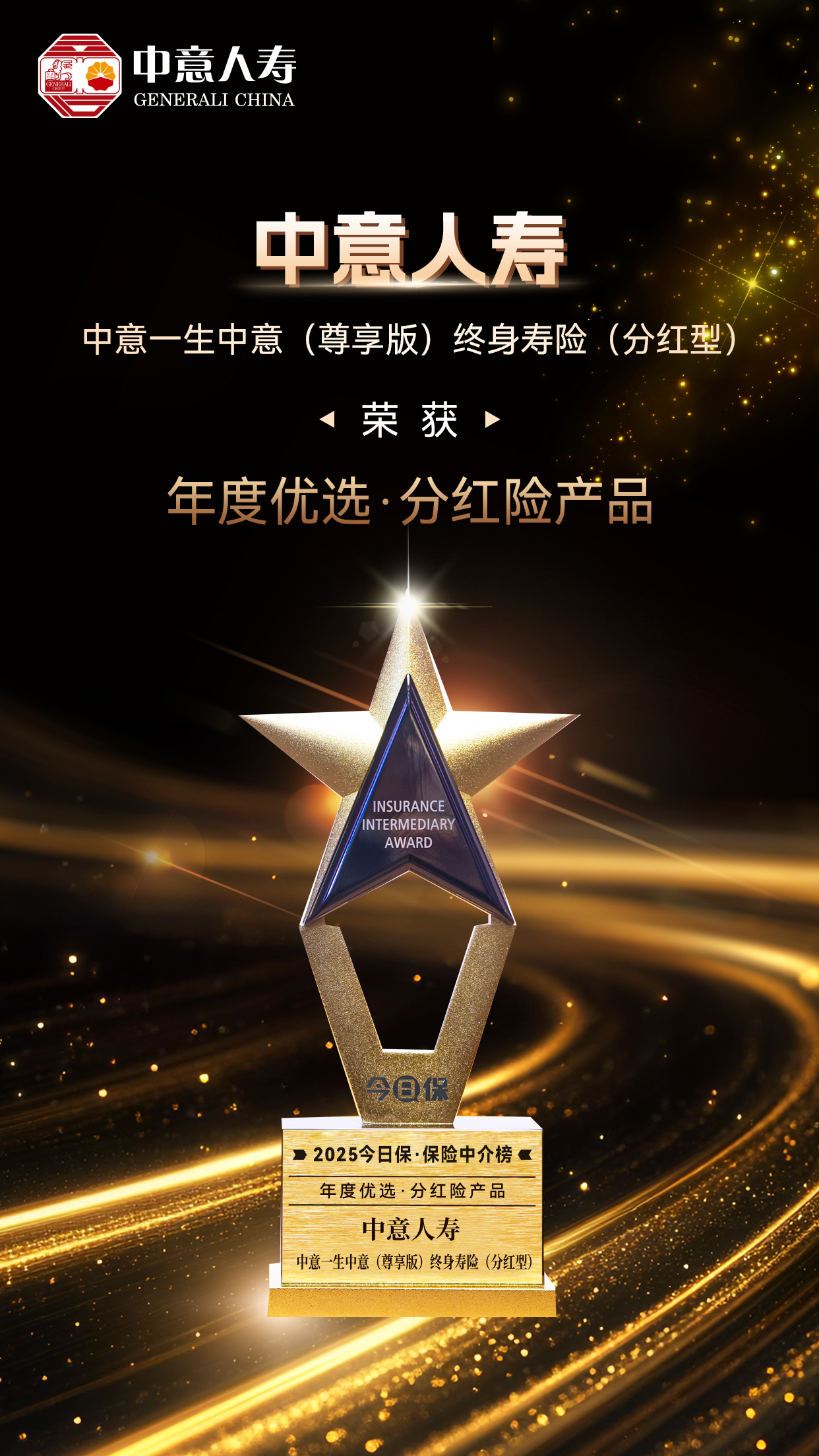 一路走來,“一生中意” 系列產品已先后斬獲2023年/2025年《中國銀行保險報》 “金口碑”年度保險產品、2024年智慧保·“中國保險鼎峰榜”財富管理卓越產品、2025年“今日保·中國保險白象榜” 年度分紅型壽險領航產品及本次2025年“今日保 • 保險中介榜”年度優選 - 分紅險產品等8項榮譽,榮譽的獲得既是對“一生中意” 系列產品市場認可度的有力認證,更折射出公司“經營穩健+風控嚴格+投資卓越+股東賦能”的多維實力。